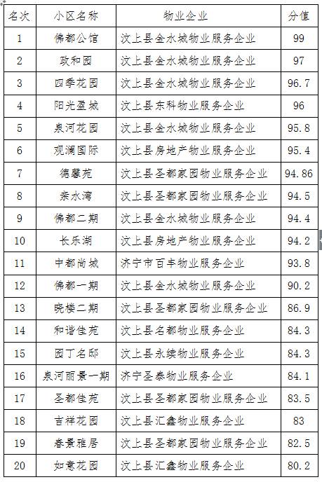 【本新聞由汶上信息港搜集自網(wǎng)絡(luò),如有侵權(quán),請聯(lián)系本站刪除】 汶上縣物業(yè)治理起步于2006年,治理辦事范疇重要為城區(qū),近年來慢慢向鄉(xiāng)鎮(zhèn)拓展?fàn)I業(yè)。今朝,汶上縣具備物業(yè)辦事天資企業(yè)共有26莢定縣房管局局屬企業(yè)2莢冬開辟企業(yè)部屬4莢冬其余為私體),經(jīng)統(tǒng)計,城區(qū)共有室第小區(qū)113個,有物業(yè)治理的室第小區(qū)54個,其余小區(qū)分辨由社區(qū)居委、村委會和相干單元代為治理(如東和園、鴻?;ㄆ?、西和園、祥云社區(qū)、閆村社區(qū)、百合苑等)。 為不竭進(jìn)步物業(yè)從業(yè)職員的工作才能,切實(shí)進(jìn)步汶上縣各物業(yè)企業(yè)的治理辦事程度,增進(jìn)汶上縣物業(yè)治理辦事提檔進(jìn)級,縣房管局多措并舉,經(jīng)由過程完美各項物業(yè)治理軌制、增強(qiáng)物業(yè)職員培訓(xùn)、建立物業(yè)治理辦事標(biāo)桿、外請高程度物業(yè)步隊、公示監(jiān)視投訴咨詢德律風(fēng)、開展物業(yè)技巧比賽等方法,增才能,強(qiáng)本質(zhì),樹形象,收到了杰出的后果。近期,縣房管局應(yīng)用1個月的時光,在汶上縣城區(qū)54個物管室第小區(qū)抽取了35個室第小區(qū)開展了物業(yè)治理辦事滿足度查詢拜訪運(yùn)動(東和新城、隆興華府、尚城雅居、翰林豪庭、中都明郡、家和佳苑等新建小區(qū)因?yàn)檫M(jìn)住率低,本次未抽?。?。 本次滿足度查詢拜訪履行百分制考評計分,考評內(nèi)亂容涉及到小區(qū)秩序保護(hù)、衛(wèi)生保潔、公共舉措措施保護(hù)、物業(yè)公共區(qū)域治理、物管職員辦事立場等方面。為確保此次查詢拜訪公正公平,由縣房管局工作職員現(xiàn)場發(fā)放問卷,小區(qū)業(yè)主現(xiàn)場填寫,每個小區(qū)不少于50份有用問卷。這項運(yùn)動將持久保持下往,目標(biāo)就是進(jìn)一步摸清汶上縣各物業(yè)公司的治理辦事情形,加倍直不雅地懂得居平易近的需求。排名成果將經(jīng)由過程相干媒體、小區(qū)公示牌、微信群等方法進(jìn)行公示,同時報有關(guān)引導(dǎo)和部分,對于外埠進(jìn)汶物業(yè)企業(yè)和開辟公司部屬物業(yè)企業(yè),其考評成果將以信函的方法寄給其總公司。經(jīng)由過程開展這項運(yùn)動,切實(shí)督促各物業(yè)企業(yè)加強(qiáng)自發(fā)意識和義務(wù)意識,從而增進(jìn)汶上縣物業(yè)治理辦事程度的┞符體晉升。 |